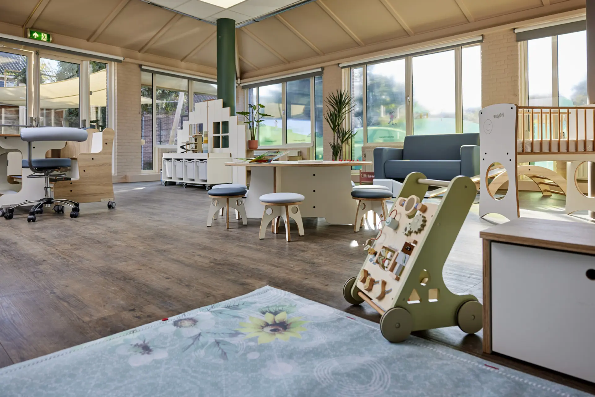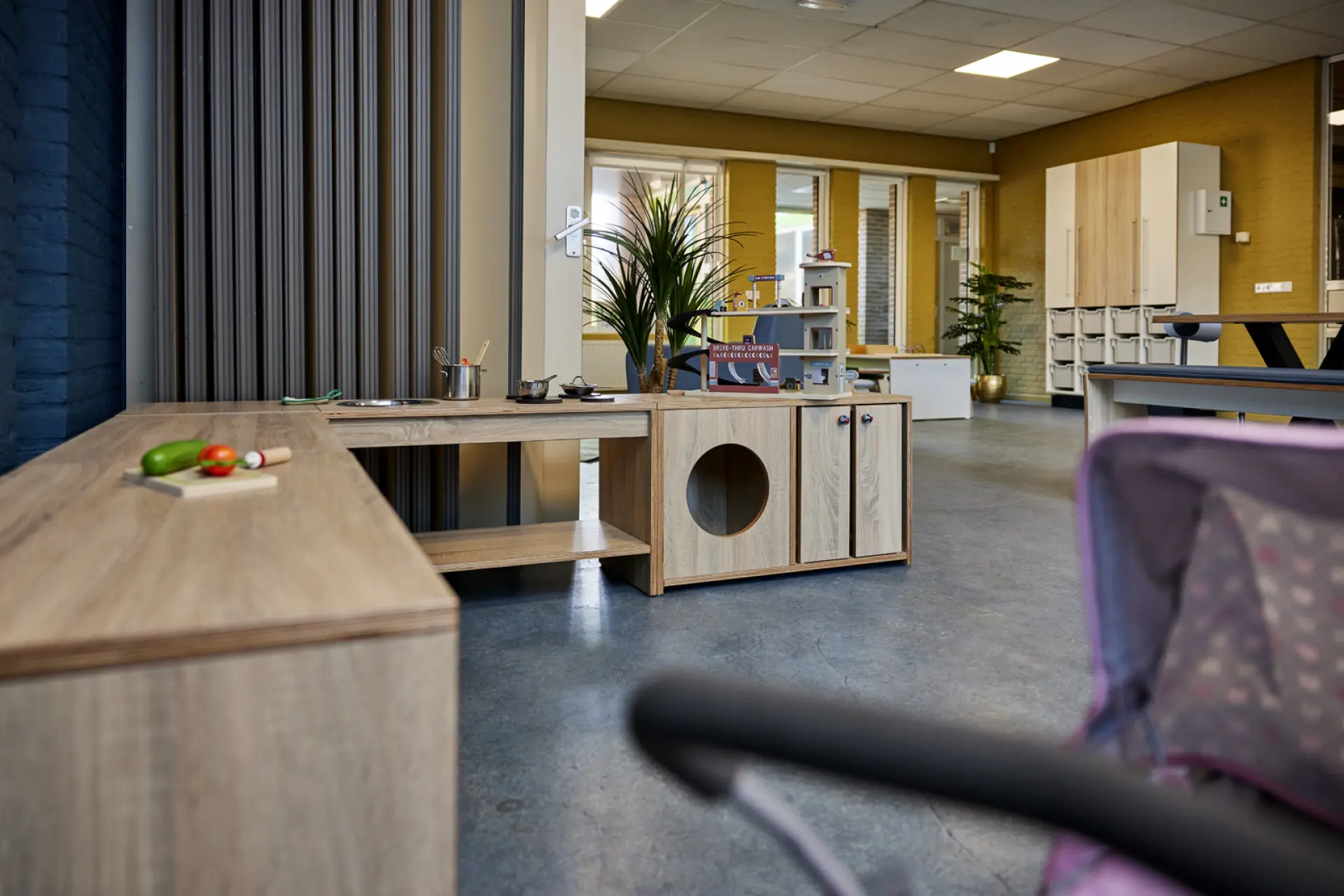 Voor de jongsten zijn er hoekjes die uitnodigen tot ontdekken: kruipen, bouwen, kijken, proberen, elke dag brengt nieuwe uitdagingen. Soms verandert een speelhoek ineens in een dierentuin, waar blokken leeuwen worden en een knuffelbeer de kassa bedient. Buiten liggen veilige speelplekken te wachten, klaar voor renspelletjes, fantasiewerelden en kleine avonturen.