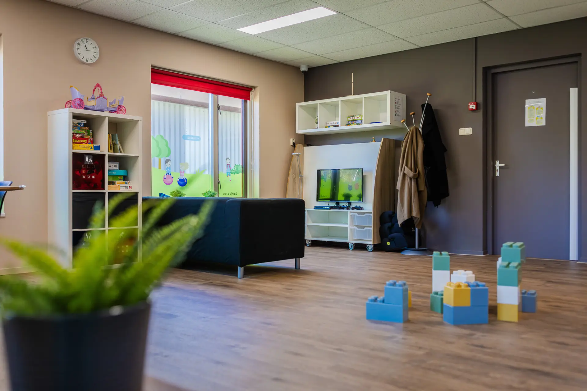 Buiten ligt een verhard plein waar gefietst, bewogen en vrij gespeeld kan worden. Door het open terrein voelt het ruim, maar het is tegelijk veilig en afgebakend. Ouders noemen deze plek vaak ‘fijn in z’n nuchterheid’. Geen overprikkeling, geen druk programma. Gewoon een plek waar je kind zichzelf mag zijn, met begeleiding die écht kijkt wat nodig is, en wat niet.